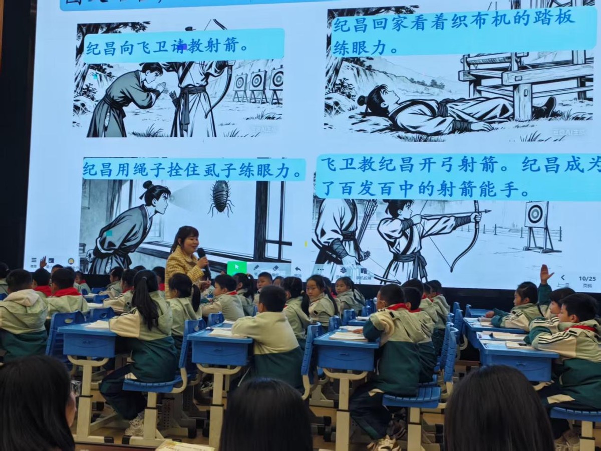 南溪区长江学校四年级组陈小燕老师执教的《纪昌学射》,教学评一体化贯穿全程:从课前素材收集,到复述的师生互评、仿写的星级评定,评价贯穿教学全过程,实现了以评促教、以评促学。