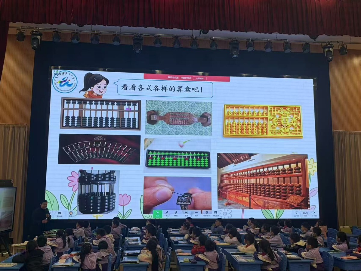南溪区长江学校二年级组数学陈功虎老师教学《认识算盘》,以“古代学者穿越”趣味情境为主线,融合“融生启智”理念,将预习反馈、实践探究与分层游戏结合,既落实算盘认知技能,又渗透数学文化,契合低年级学生认知特点。