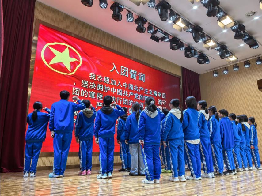 习近平总书记曾指出:“共青团作为广大青年在实践中学习中国特色社会主义和共产主义的学校。”近日,一场以“传承红色基因,勇担历史使命”为主题的“一二·九运动”纪念团课暨新团员入团仪式在宜宾市叙州区黄冈学校学术厅举行。学校初中部全体学生齐聚一堂,通过庄严仪式与深度互动,重温历史记忆,凝聚青春力量。