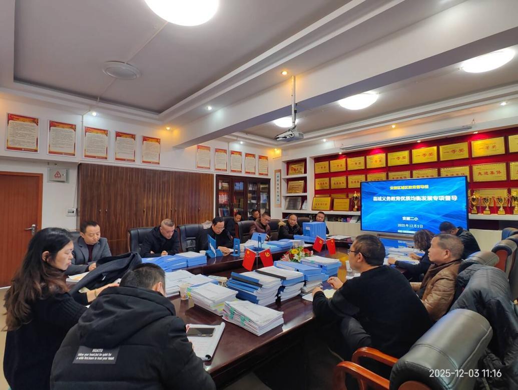 紧盯问题整改,督实迎检准备。为推动安居城区义务教育优质均衡发展迎评工作提质增效,12月1日至5日,城区教育督导组对辖区内的9所中小学校开展全覆盖、全方位专项督导。