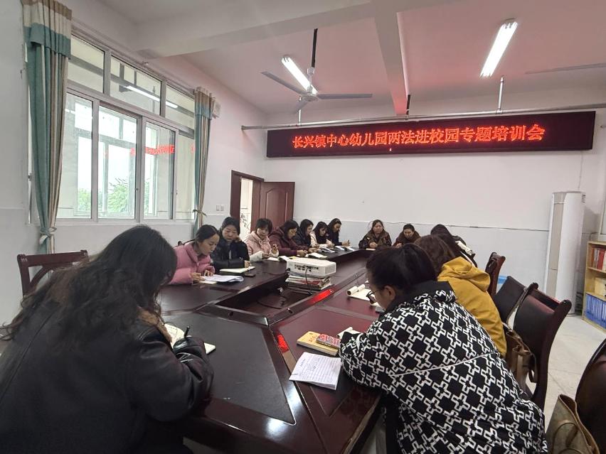 为深入学习贯彻《中华人民共和国未成年人保护法》、《中华人民共和国预防未成年人犯罪法》,切实强化教职工的法治意识和责任担当,筑牢幼儿健康成长的法治防线,2025年12月8日,宜宾市南溪区长兴镇中心幼儿园组织开展了“两法进校园”教职工专题培训。