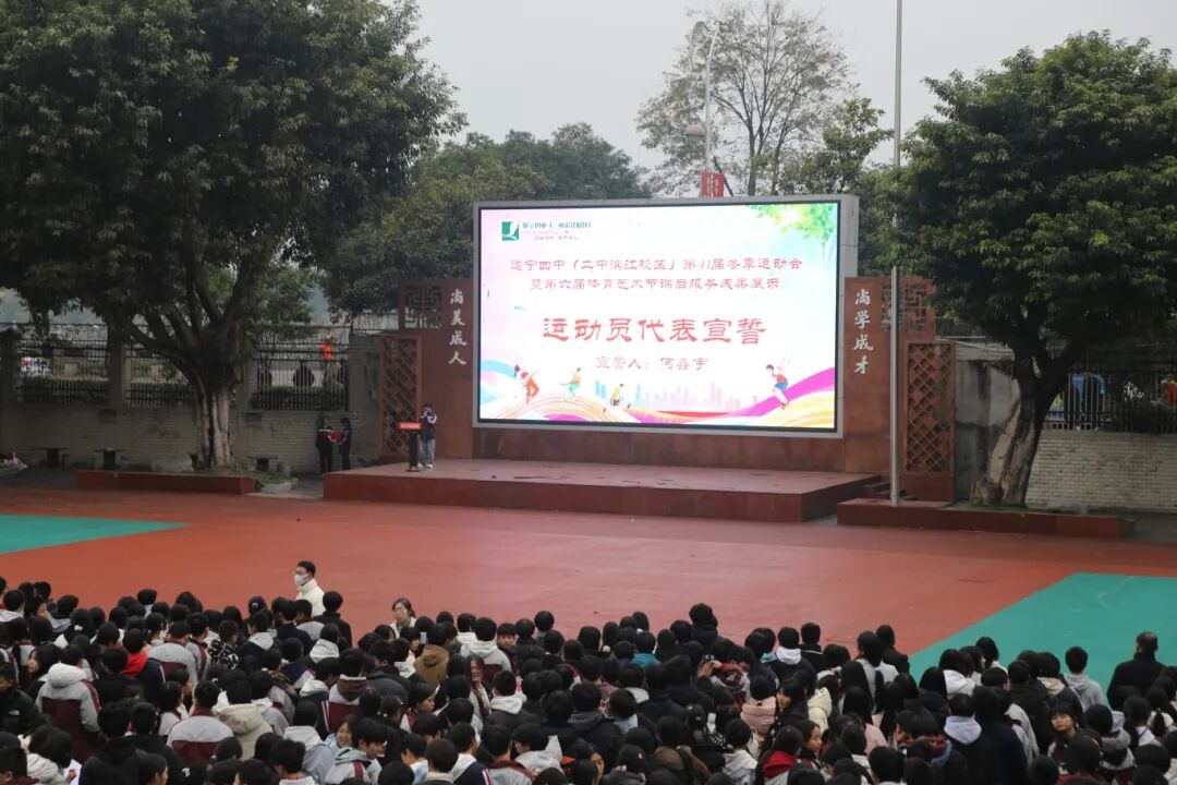 冬日暖阳,激情飞扬。2025年12月4日上午,遂宁四中(二中滨江校区)田径场上彩旗飘扬,人声鼎沸,全校师生齐聚一堂,共同迎来了备受瞩目的2025年冬季运动会。本届运动会以“跃动冬日 燃情校园”为主题,旨在增强学生体质,培养团队精神,展现我校学子积极向上、奋勇拼搏的精神风貌。