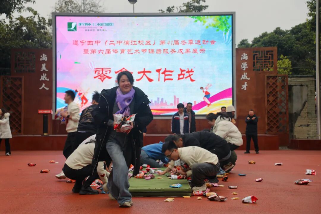 最后,随着书记王强铿锵有力地宣布“遂宁四中(二中滨江校区)第41届冬季运动会暨第六届体育艺术节课后服务成果展示正式开幕!”,王强扣响了发令枪,清脆的枪响划破长空,整个赛场瞬间沸腾,各项比赛随即全面展开。