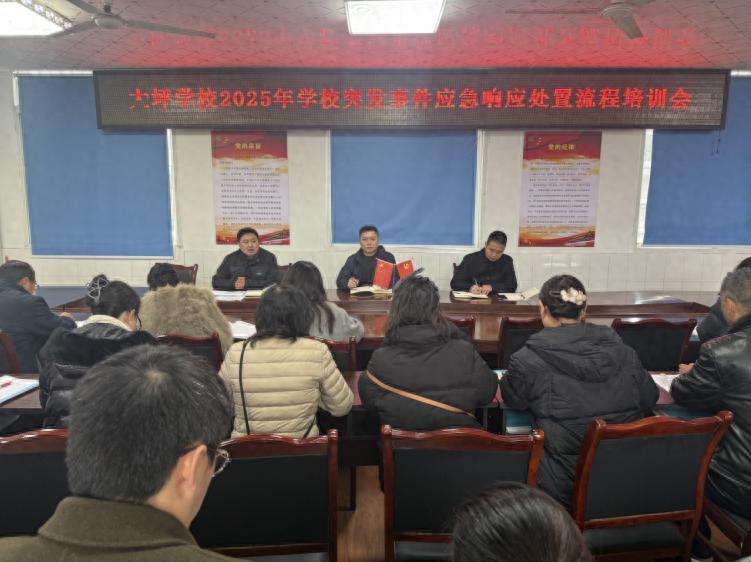 为全面压实校园安全管理责任,筑牢校园安全“防火墙”,切实保障全体师生生命财产安全,2025年12月9日,宜宾市南溪区大观镇大坪学校组织开展了突发事件应急响应处置流程培训,学校全体教职工(含教学、行政、后勤、安保、保洁等各岗位人员)全员参与,实现无遗漏、无死角的培训覆盖,推动安全意识入脑入心、安全责任落地落实。