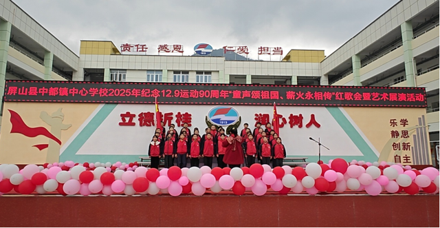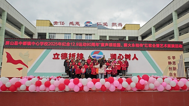 为纪念“一二·九”学生爱国运动,传承红色基因,丰富校园文化生活,展现师生积极向上的精神风貌,2025年12月9日,屏山县中都镇中心学校举办了12.9运动90周年“童声颂祖国、薪火永相传”红歌会暨艺术展演活动。