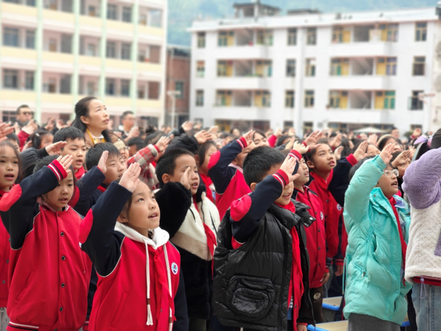 活动在庄严的升旗仪式中拉开了帷幕。屏山县中都镇中心学校全体师生肃立,注视着五星红旗冉冉升起,高唱国歌,爱国情怀在每个人心中激荡。