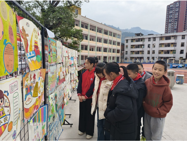 同期,主题校园艺术展在校园长廊同步展出。艺术展汇集了学生们围绕爱国主义、时代新风、校园生活等主题创作的绘画、书法、手抄报。一幅幅色彩明丽的画作,一张张笔触稚嫩却情感真挚的书法,一件件创意独特的手工,吸引了众多师生驻足观赏。艺术展与红歌赛相得益彰,以不同的艺术形式表达了孩子们对祖国的热爱、对美的追求和对梦想的描绘,成为校园中一道亮丽的风景线。
