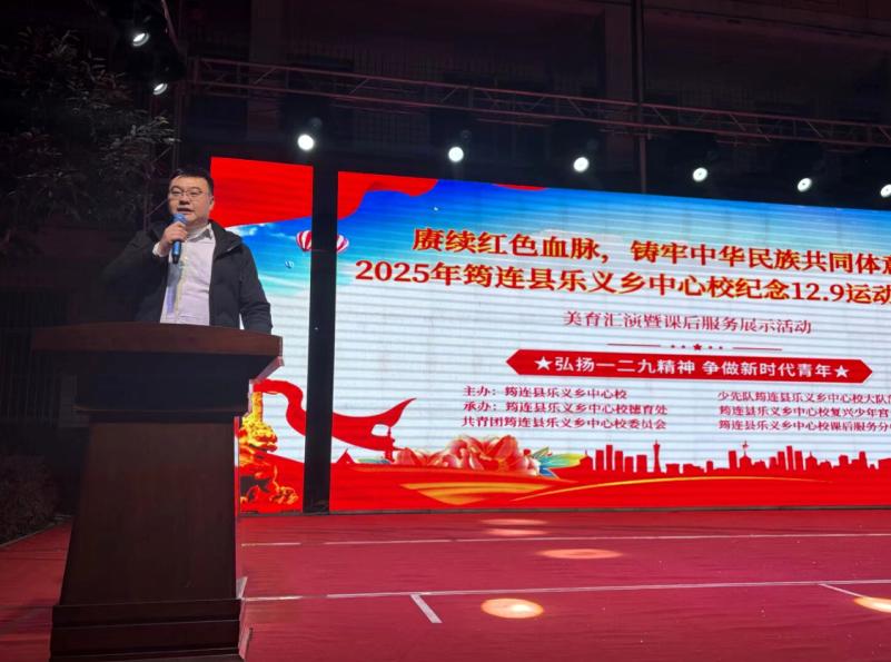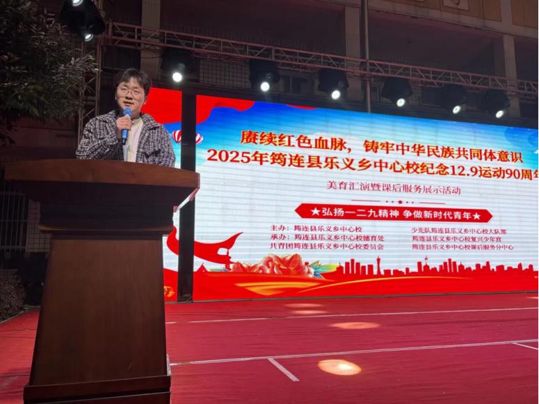 活动伊始,筠连县乐义乡中心校党支部书记、校长杨兴伟发表致辞,结合党的历史与“一二·九”运动的时代内涵,强调党建引领对青少年成长的重要意义,号召全体师生牢记党的教诲,传承红色血脉,以实际行动践行“为党育人、为国育才”的初心使命。