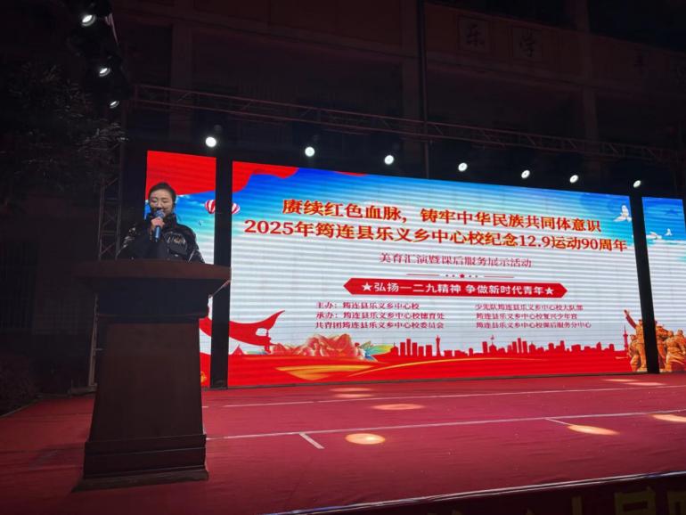 为深入学习贯彻习近平新时代中国特色社会主义思想和党的二十大精神,以党建引领爱国主义教育走深走实,传承“一二·九”运动的红色基因与革命精神,引导青少年厚植家国情怀、勇担时代使命,2025年12月7日,筠连县乐义乡中心校在学校党支部的统筹引领下,成功举办了“赓续红色血脉 铸牢中华民族共同体意识”主题“12·9”文艺汇演。学校全校师生齐聚一堂,以艺术为媒、以初心为魂,在歌声与舞姿中回望峥嵘岁月,在激情与奋进中展现新时代师生的使命担当,让党建红引领青春色,让红色基因在校园落地生根。