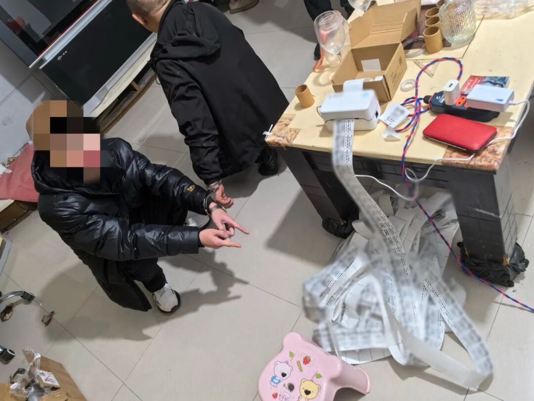 经过多日缜密侦查和视频轨迹追踪,民警成功锁定周某、刘某、赵某3名嫌疑人的身份信息,并掌握了其落脚地点。11月13日凌晨,在确认嫌疑人已返回住所且无逃脱可能后,民警瞅准时机果断出击,在辖区某小区内将正准备再次外出作案的周某、刘某、赵某一举抓获,当场查获便携式热敏打印机2台、空白打印纸3卷、已打印完成的涉诈“小卡片”500余张。