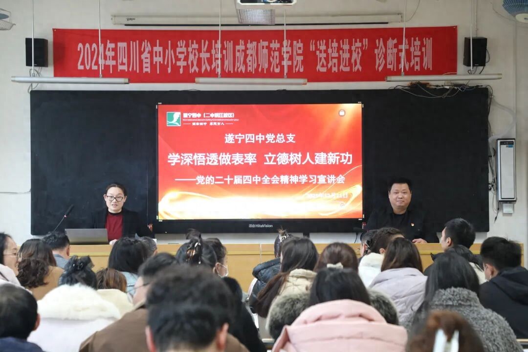 本次宣讲会的成功举办,标志着我校学习贯彻党的二十届四中全会精神掀起了新的热潮。学校党总支将继续加强组织领导,精心部署安排,采取多种形式推动学习宣传贯彻不断走深走实,确保全会精神在学校落地生根、开花结果,引领学校各项事业不断迈上新台阶!(来源:遂宁四中 图/夏姝玲)