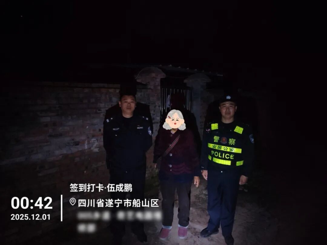 深夜,遂宁市公安局安居区公安分局聚贤派出所接到群众报警求助,寒风中一位七旬老人在乡间路口来回徘徊,眼神迷茫,一场温暖的深夜寻家行动。11月30日23时30分许,聚贤派出所接到群众报警,称在安居区会龙镇唱龙村附近有一位老人独自徘徊,疑似迷路。接警后,值班民警立即赶到现场,找到了这位神色茫然的老人。
