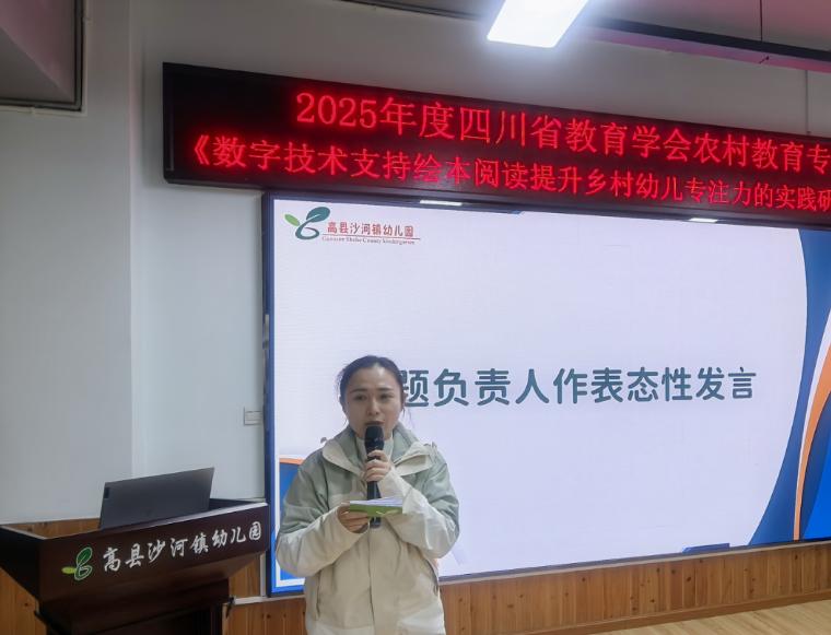 高县沙河镇幼儿园党支部书记、园长刘丽作了表态发言,幼儿园将为课题研究工作提供全方位支持,保障研究顺利推进,并以此为契机推动园所教科研水平的整体提升。