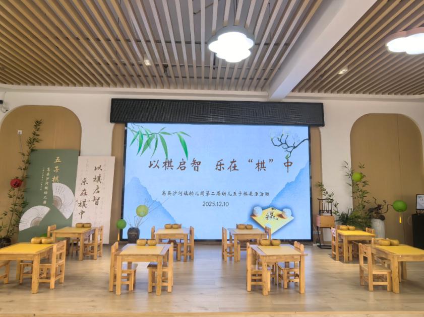为让中华传统文化浸润幼儿成长之路,在趣味体验中启迪智慧、涵养品格,高县沙河镇幼儿园以棋启智,乐在“棋”中大班幼儿五子棋展示活动于2025年12 月 10 日下午在清溪分园汇报厅如期举行。48名来自各个班级的幼儿齐聚一堂,在古雅氛围中感受棋道魅力,共赴传统文化之约。