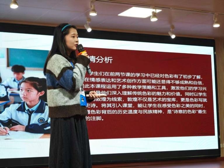 音乐教师李怡以旋律为媒介、以传承为脉络,聚焦多元音乐文化,通过民族乐器体验、合唱编排与跨文化音乐对比设计,既注重视唱练耳、节奏把控等基础能力培养,又凸显音乐文化的传承与创新,教学思路兼具创新性与可操作性,展现了扎实的专业素养与“以美育人”的教学理念。