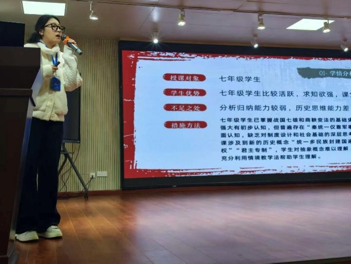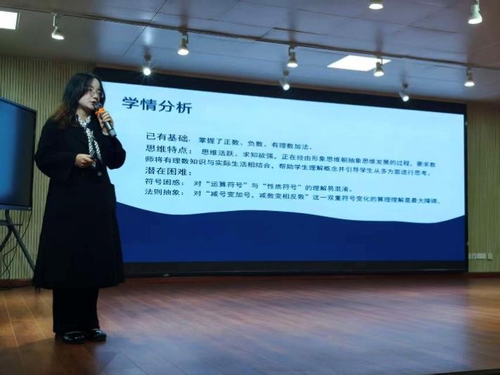 数学教师廖婷婷立足课标锚定目标,聚焦素养设计课堂——说课中精准把握教材重难点,以“问题链”驱动学生思维进阶,将数形结合、建模思想等核心方法自然融入教学流程,既展现了扎实的专业功底,又凸显了“以生为本”的教学理念,让数学课堂兼具深度与温度。