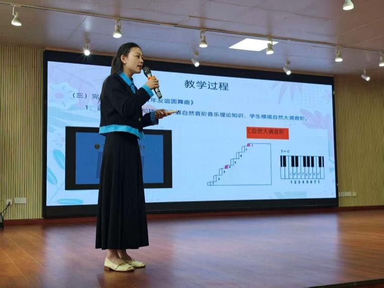 音乐教师吕家洁以审美为核心、以情境为桥梁,紧扣美育要求,通过旋律赏析、节奏互动与情感共鸣的层层递进,将音乐知识习得与审美能力培育、文化传承深度融合,表达富有感染力,环节设计兼具趣味性与专业性,尽显音乐教学的美育价值与人文温度。