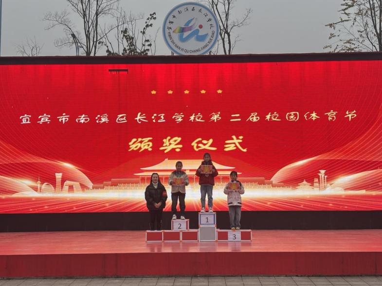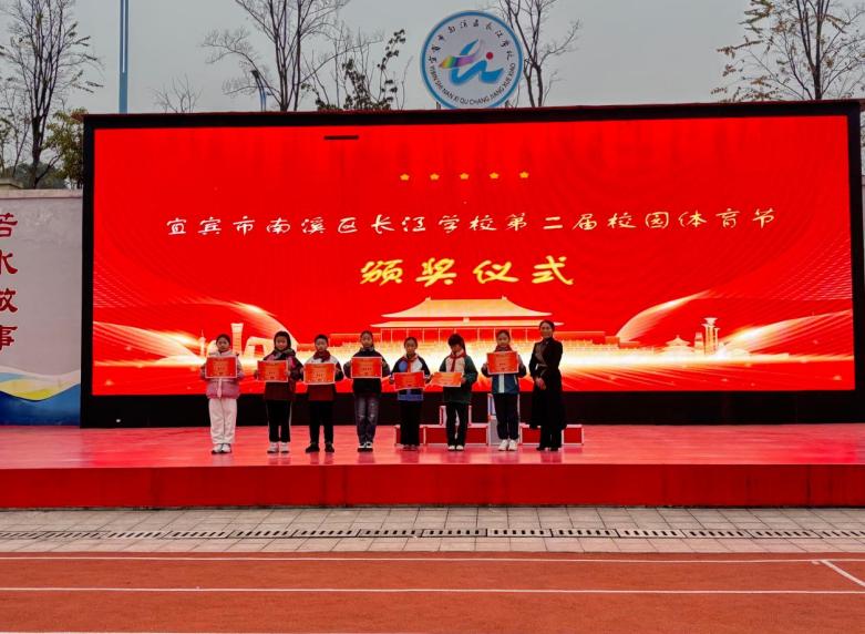 颁奖典礼环节,南溪区长江学校领导、年级主任、班主任依次登台,为获奖优秀运动员、获奖班级及“体育道德风尚奖”获得者颁发奖状、奖牌。该校校长张清银在致辞中勉励全体师生,要将赛场上的拼搏精神融入学习与生活,以强健的体魄、饱满的热情迎接新的挑战。