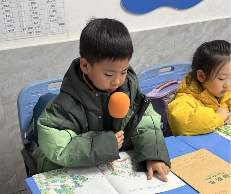 罗老师设计了“听故事—演故事—用故事”教学活动。教学时,老师结合精美绘本画面,带领孩子们逐页品读故事,结合已有的汉语拼音知识,“捡拾”字母叶片,拼出正确的音节、组合成有意义的词语,让学生在沉浸式体验中体会合作的意义,更在潜移默化中爱上拼读、乐于表达。