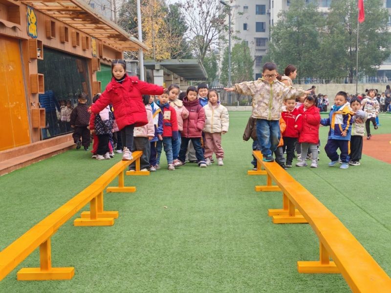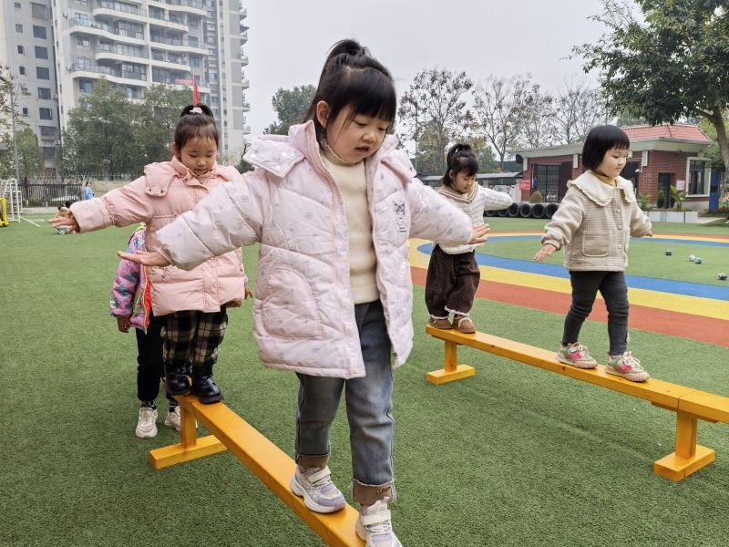 在行走的过程中有些摇晃,他们也努力调整姿势,当成功走到终点时,宝贝们脸上都露出了自豪又开心的笑容。这一刻,他们不仅战胜了平衡木,更战胜了自己!