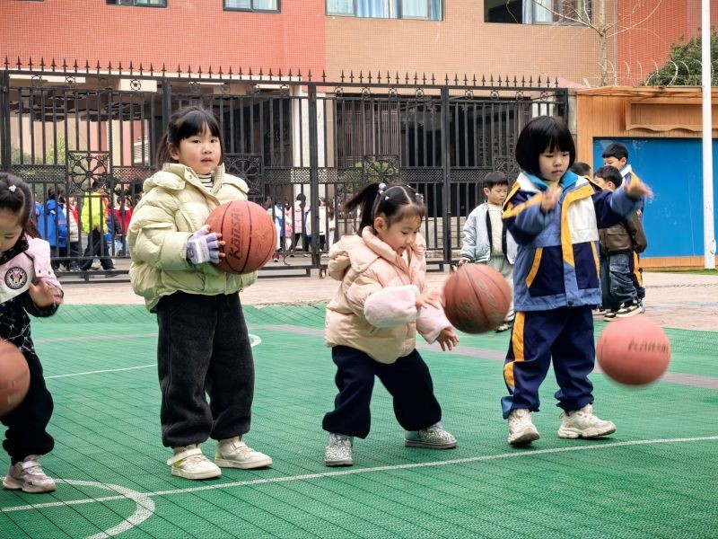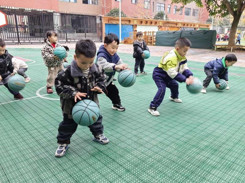 拍篮球项目中,宝贝们化身一个个专业的"篮球小健将"。他们双手紧紧握住篮球,眼神专注,随着篮球的起落,小胳膊灵活地上下摆动,篮球也欢快地“跳跃”着。