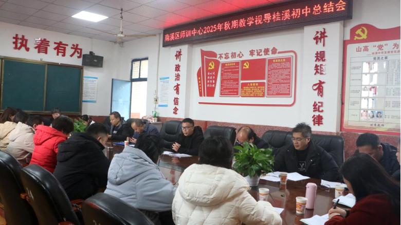 随后,视导组对南溪区桂溪初级中学校教学管理、教研组建设、校本研修等情况进行了细致查阅。上午11:00,教学视导总结会在行政会议室举行。各学科教研员依次进行精准点评,既分析课堂得失与教研组建设情况,也为学科教学提出具体建议。
