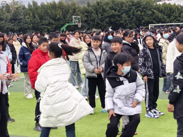 而运动场的击鼓传“花”活动更是趣味盎然,屏山县新安镇九年一贯制学校7-9年级同学齐聚运动场参与游戏,鼓点声中彩花传递,惊喜与期待交织。被选中的同学或登台展才艺,歌声、舞蹈赢得阵阵喝彩;或细说传统节日来历习俗,让民俗知识在互动中悄然传递,既活跃了活动气氛,又进一步加深了学生对传统文化的认知。