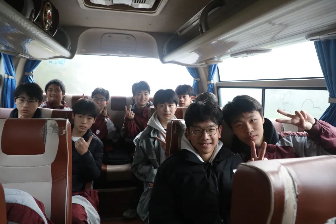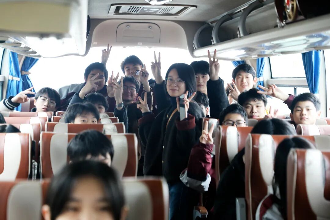 随后,同学们乘坐大巴车前往电子科技大学,一路上有说有笑,歌声不断。