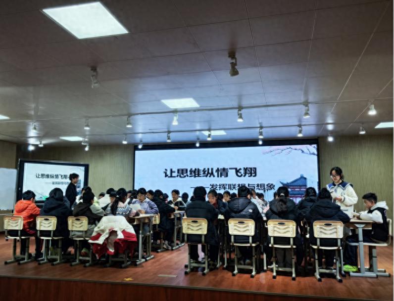 卢丽娟老师本次参评的教学课题为《让思维纵情飞翔——发挥联想和想象》。课堂以“一把伞的故事”为引,巧妙激发学生的思维活力,引导学生逐步深入理解联想与想象在写作与阅读中的运用。教学过程中,学生积极参与、踊跃发言,课堂氛围生动活跃,充分展现了卢老师出色的课堂驾驭能力与教学设计水平。