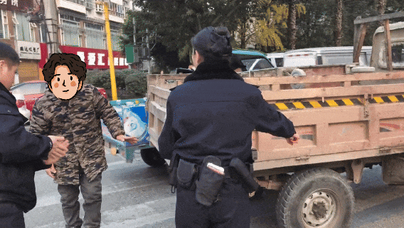 下班高峰的车流中一辆三轮汽车在交叉路口“罢工”,后方喇叭声此起彼伏,就在这时一辆路过的警车停了下来……