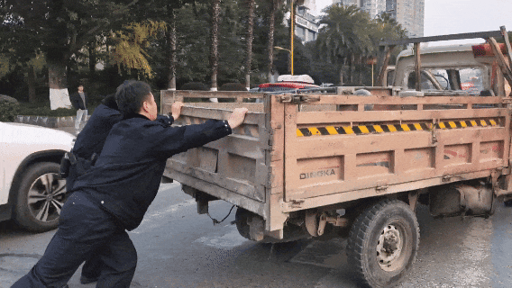 曾娜二人迅速在来车方向做好安全警示并上前了解情况。得知该车辆行驶到此处时突发故障无法启动,两人快速俯身检查车辆状况,在确认具备推行条件后,二人果断来到车尾,与车主默契配合:一人掌控方向盘,两人在车尾俯身推车。“一二三,走!”三人在车流中一齐俯身、弓背、协同发力,最终将车辆缓缓推至路边安全区域。
