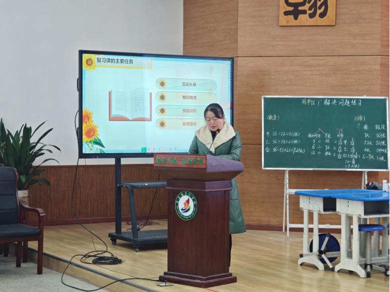 袁承艳老师执教的是三年级《归一问题解决的练习》,袁老师课堂互动形式丰富,并注重引导学生自主思考、大胆表达,及时捕捉学生的思维亮点并精准点拨。课堂知识讲解、探究实践、巩固练习环节衔接自然,实现了“知识传授”与“能力培养”的有机统一。