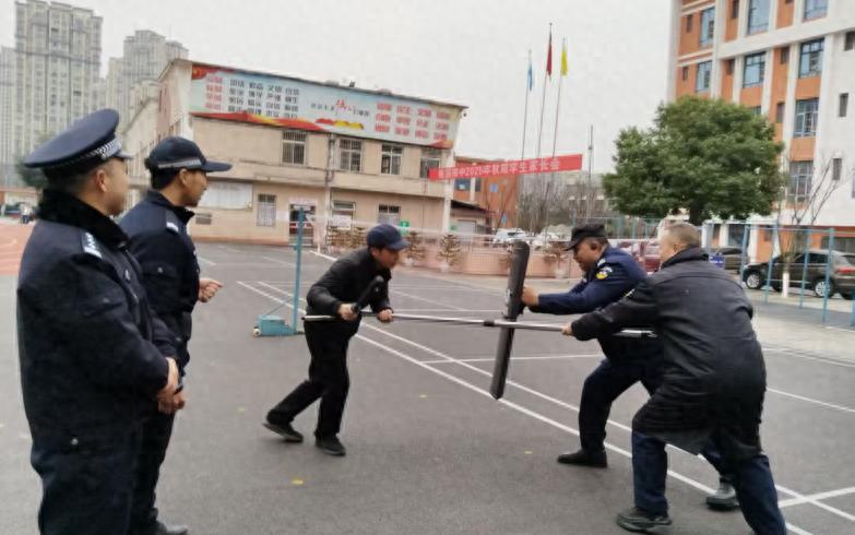 本次演练模拟暴恐分子冲击校园的场景,重点围绕安保器材规范操作和应急处置战术配合两个科目展开。演练中,徐云飞及随行警员现场演示了钢叉、盾牌、橡胶棍等器材的使用方法,并就快速布控拦截、多人协同合围、安全制服暴徒等关键环节进行了手把手教学。南溪区第四中学校全体安保人员认真听讲、反复实操,严格按照指令完成警戒封控、器材联动、战术配合等全流程处置环节,有效提升了应急处突的实战能力和协同作战意识。