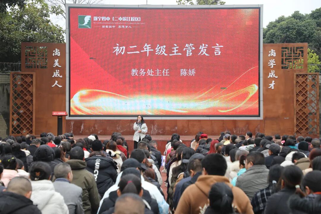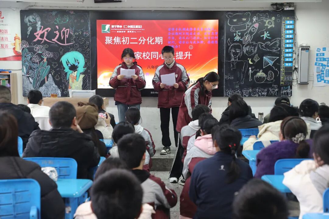 12月26日下午,遂宁四中(二中滨江校区)初二年级2025年秋季学期家长会如期开启。全体家长齐聚校园,共赴育人之约,聚焦初二成长关键期,凝聚家校同心之力,为学子成长保驾护航。