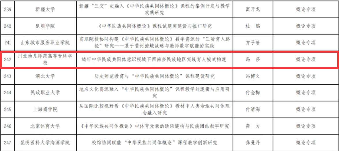 14、2025年10月学校校长冯莎教授主持的《铸牢中华民族共同体意识视域下西南多民族地区实践育人模式构建》获批2025年度国家民委高等教育教学改革研究项目立项。