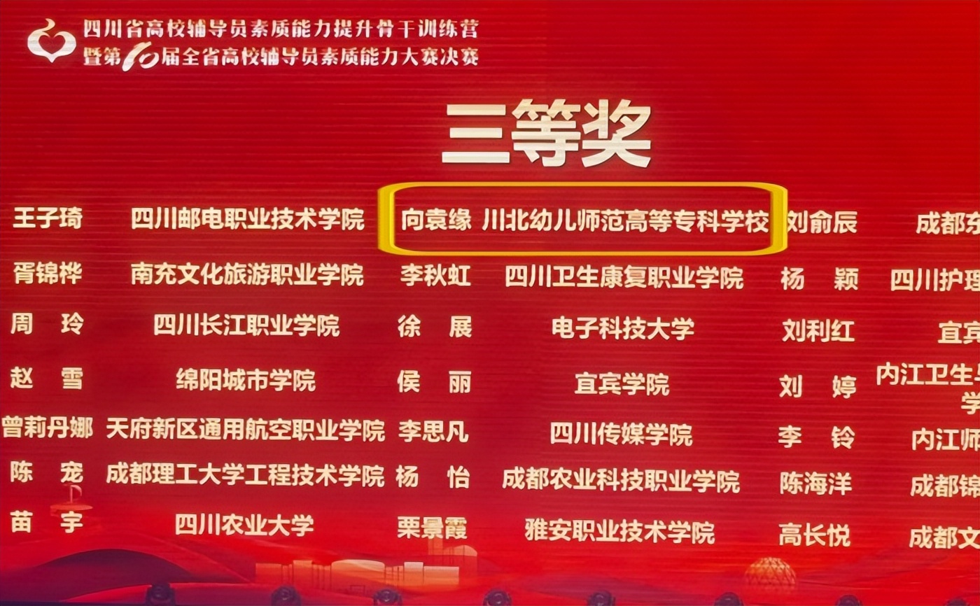 19、2025年11月学校人文艺术学院辅导员向袁缘在四川省第十届高校辅导员素质能力大赛决赛中获三等奖。