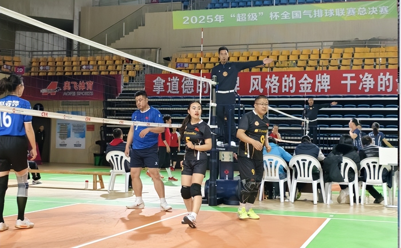 25、2025年12月大众排球(气排球)国家级裁判员、川北幼专教师周鹏执裁2025年“超级杯”全国气排球联赛总决赛。