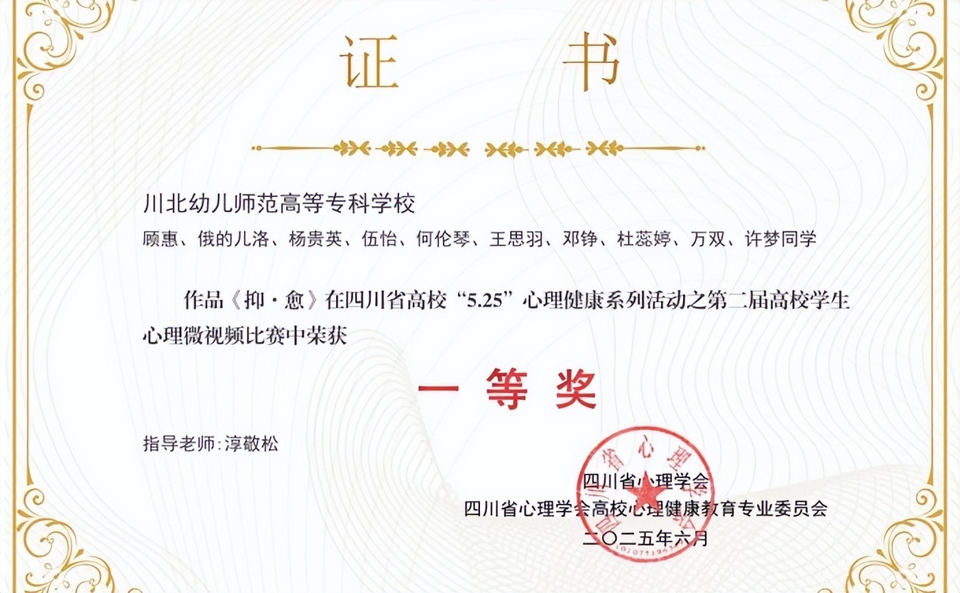 9、2025年7月学校在四川省高校“5.25”心理健康系列活动中荣获一等奖。