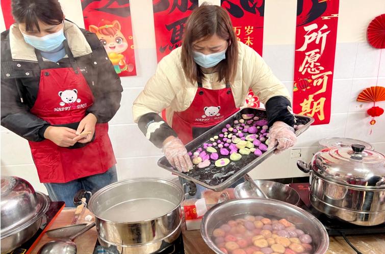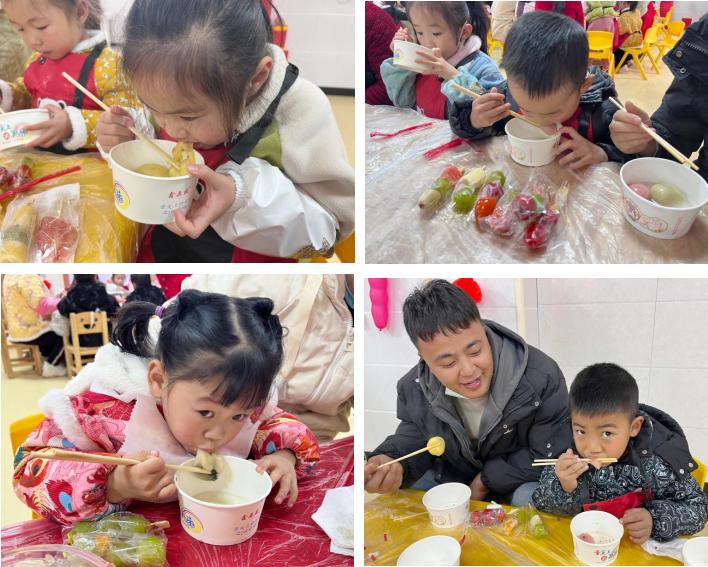 等待间隙,幼儿与家长通力合作,制作趣味糖葫芦。欢声笑语间,各民族家庭其乐融融。热腾腾的汤圆出锅后,亲子家庭共同品尝劳动成果,现场暖意浓浓,民族团结的情谊在舌尖流淌、在心中扎根。