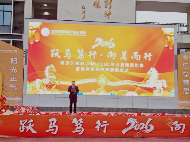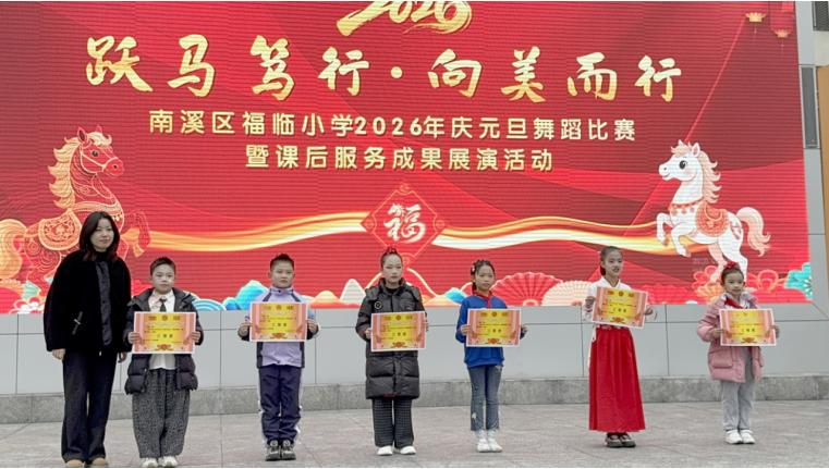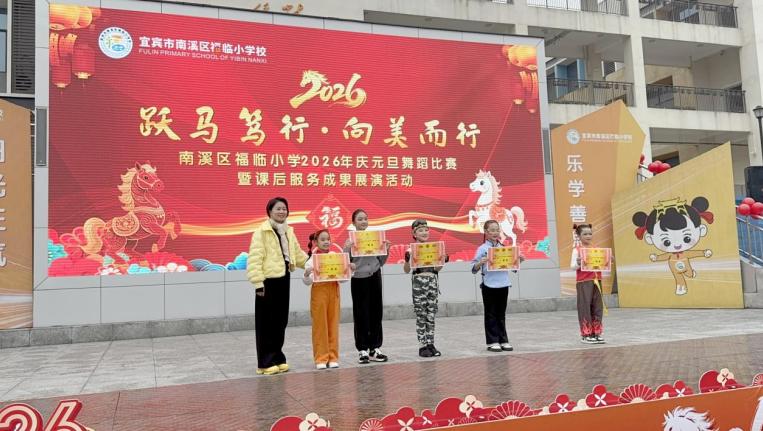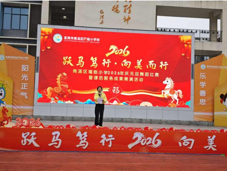 此次“跃马笃行·向美而行”庆元旦舞蹈比赛暨课后服务成果展演活动,不仅为同学们提供了一个展示艺术才华的舞台,丰富了校园文化生活,更是南溪区福临小学校课后服务工作成果的一次集中展示,充分体现了该校在素质教育方面的积极探索与成效。展望2026年,福临小学全体师生将以更加饱满的热情、昂扬的斗志,继续“跃马笃行”,在追求幸福教育的道路上不断迈进,创造更加辉煌的成绩。(周礼 来源:宜宾市南溪区福临小学校)
