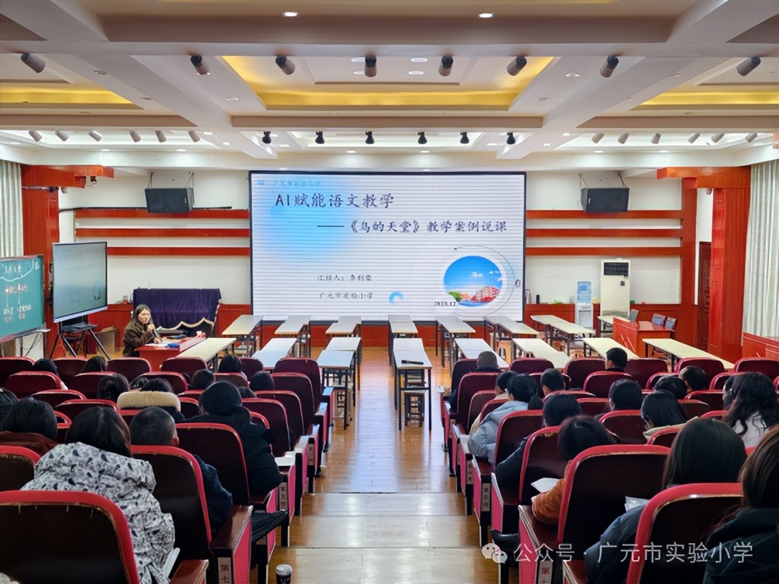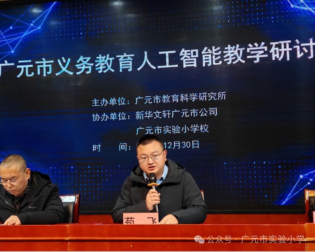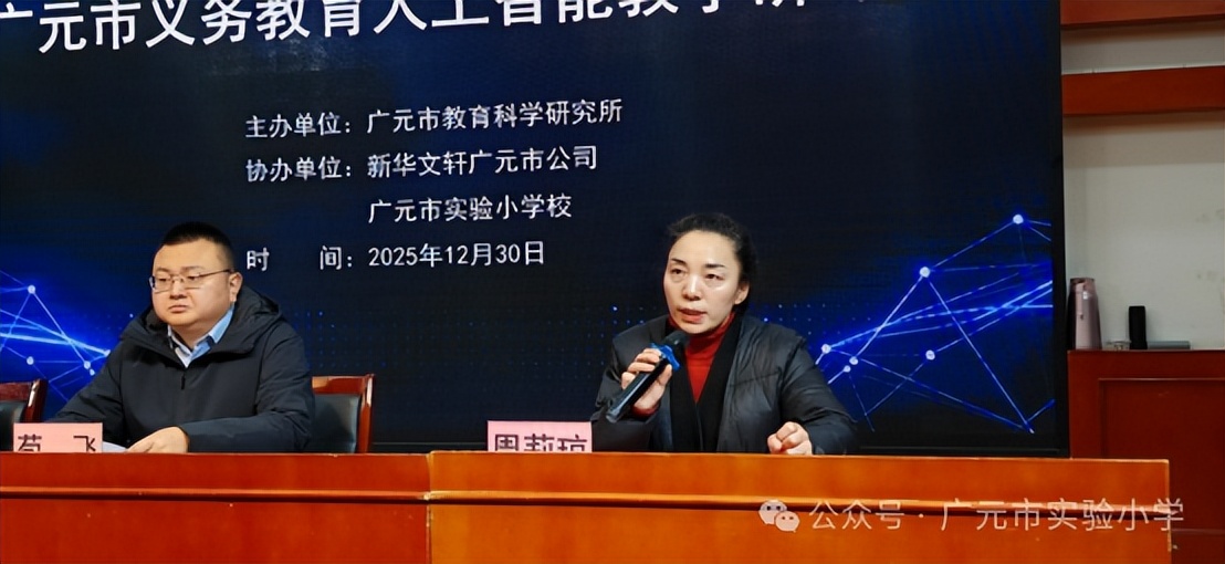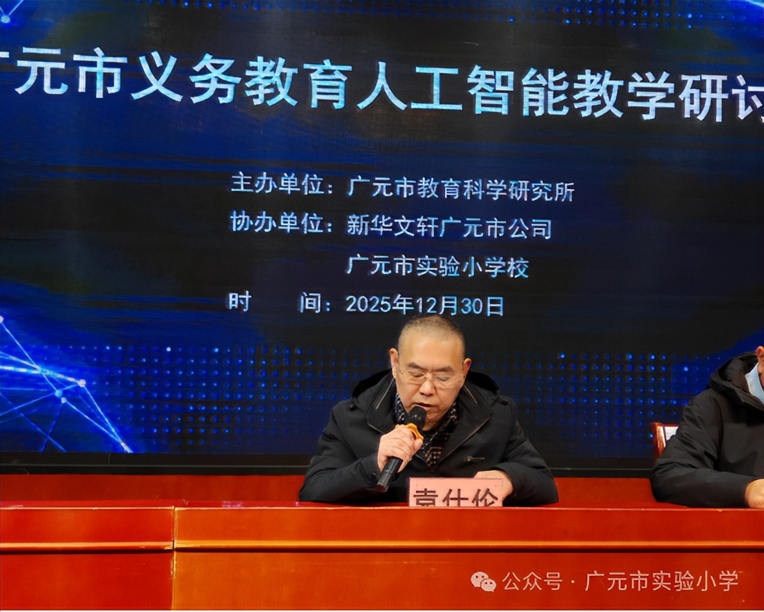 为深入贯彻《中小学人工智能通识教育指南(2025年版)》《教师生成式人工智能应用指引(第一版)》等文件精神,推动人工智能与义务教育深度融合,12月30日,广元市义务教育人工智能教学研讨会在广元市实验小学顺利举行。本次活动由广元市教育科学研究所主办,新华文轩广元市公司与我校联合协办,全市信息科技教研员、信息科技和小学语文骨干教师代表,共100余人参加此次研讨会,共探AI赋能教育的创新路径。