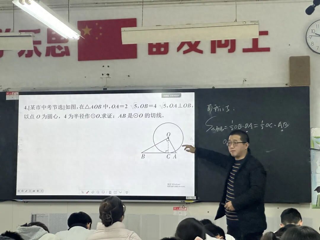 杨老师的课堂讲解语言诙谐、妙趣横生,例题设计新颖,让切线判定的复习充满趣味,串联全等、中位线等知识,实现综合知识的灵活应用和融会贯通,受到老师们的一致好评。