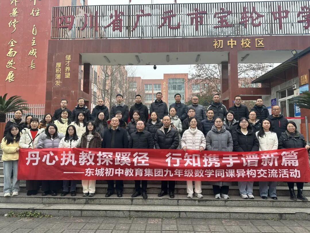 12月30日,利州区东城实验教育集团数学学科“同课异构”教研活动在宝轮中学初中校区顺利举行。来自东城实验初级中学和宝轮中学全体数学教师齐聚一堂,以同一教学内容为载体,演绎不同的教学思路与课堂设计,用专业的教研热情点燃这个充满思辨的季节。