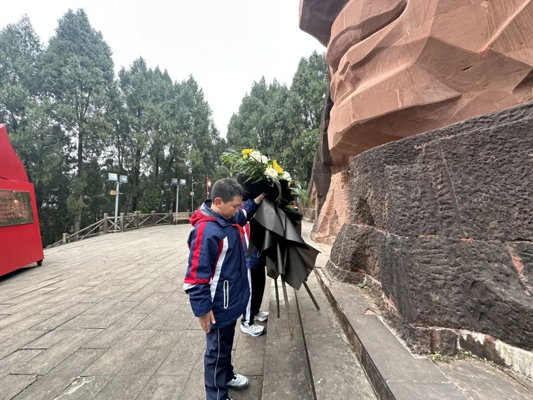 抵达红星公园,学生代表手持素菊,于革命纪念雕塑前静默肃立。当洁白的花束轻触石阶,仿佛两个时代在此温柔相会——盛放的不只是菊瓣,更是青春对历史的深深致敬。
