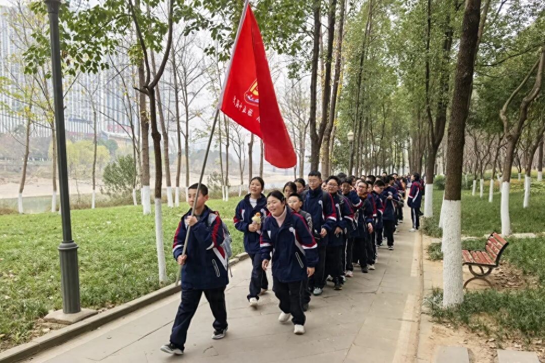 岁末迎新,征程再启。2025年12月30日下午,广元市利州区大东英才学校七年级师生于冬日暖阳中意气出发,踏响了奔赴红星公园的铿锵足音。路途虽远,却无人言弃;步履虽沉,却始终向前。汗水印证坚持,互助传递暖意,每一寸行走的印记,都镌刻着青春向上的笃定。