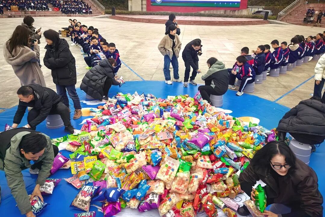 “零食大作战”将气氛推向欢快的高潮。各班代表围聚成圆,音乐声中,缤纷的零食包如接力般在手中传递。速度与默契交织,欢呼与笑声齐飞。