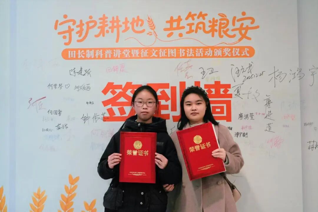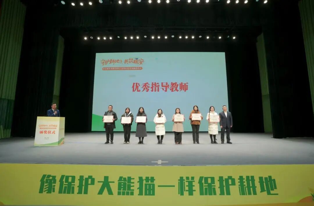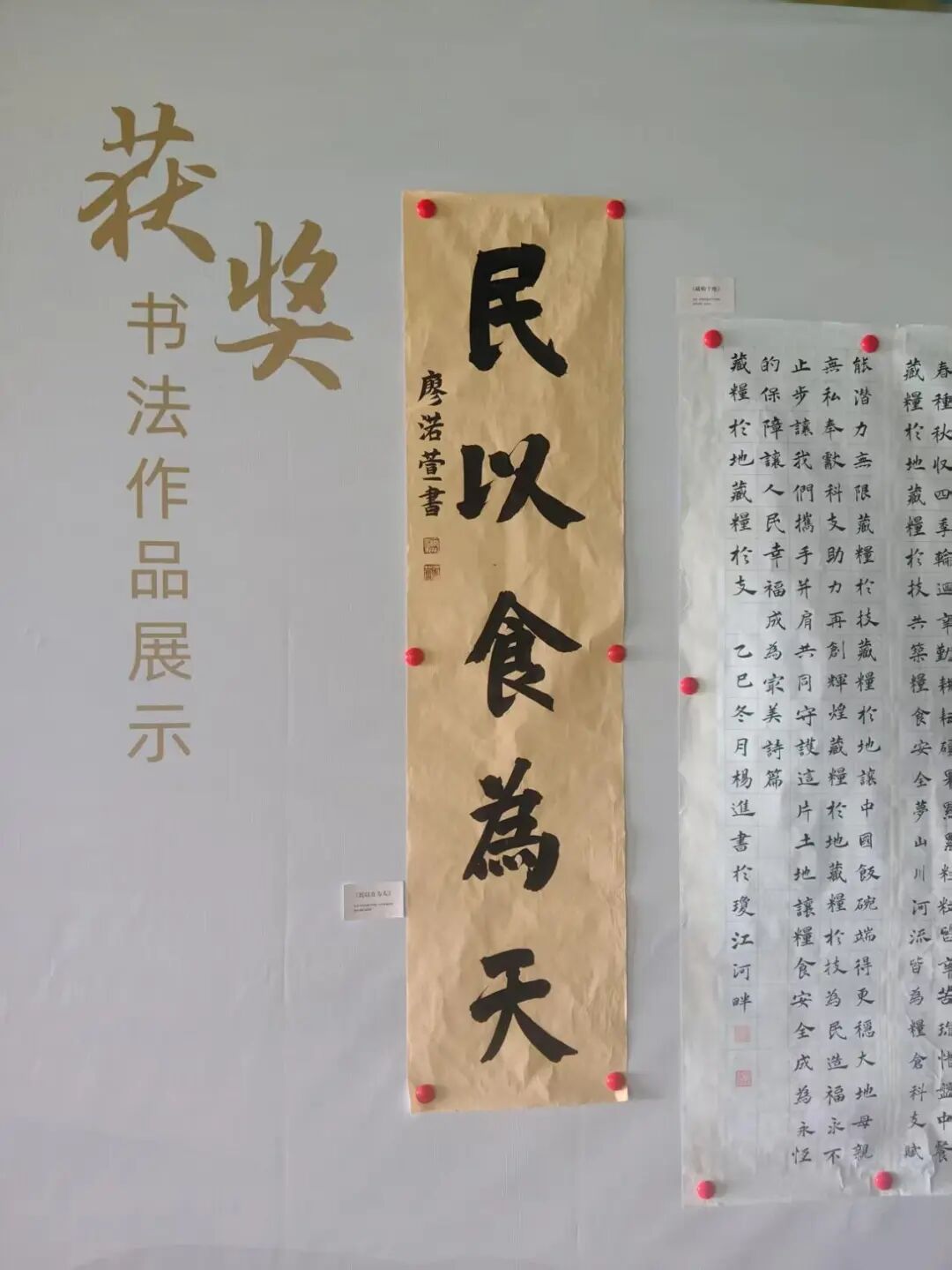 手捧鲜红的荣誉证书,获奖学生和指导教师登上领奖台,这份荣誉既是对师生书法技艺的肯定,更是对他们以书法传递粮食安全理念的认可。