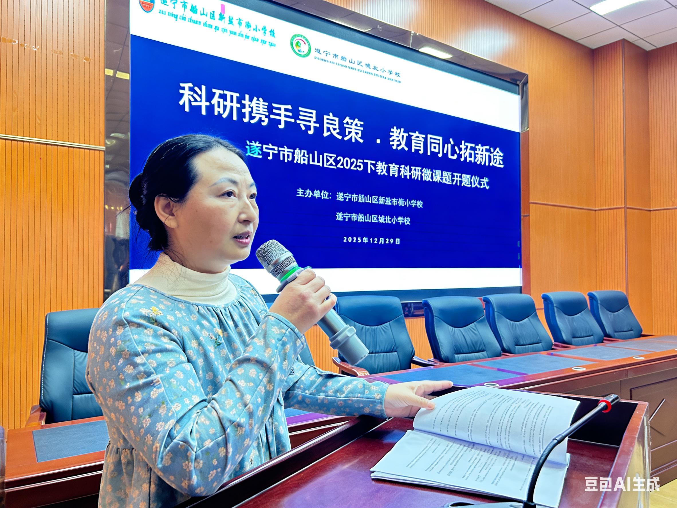 为深化校际合作,共促教师专业成长,2025年12月29日下午,遂宁市船山区城北小学与新盐市街小学联合微课题开题报告会在新盐市街小学举行。两校领导、课题组成员及学科专家齐聚一堂,围绕“科研携手寻良策 教育同心拓新途”主题,共同开启科研协作新篇章。