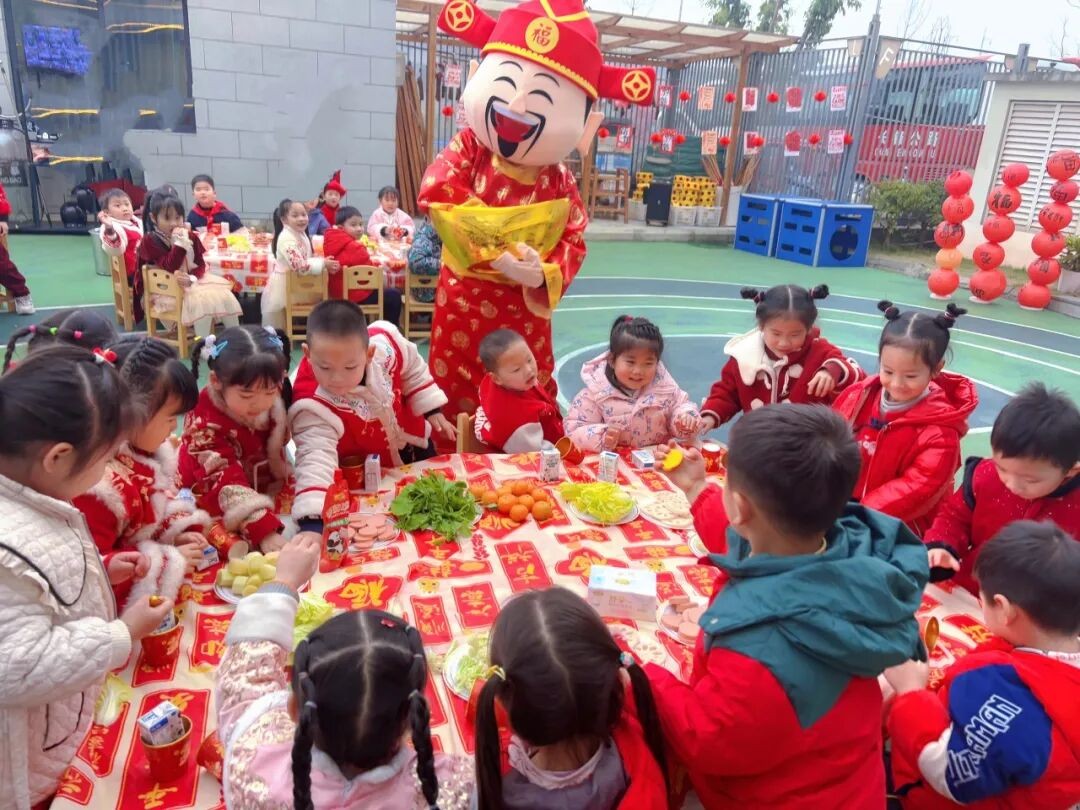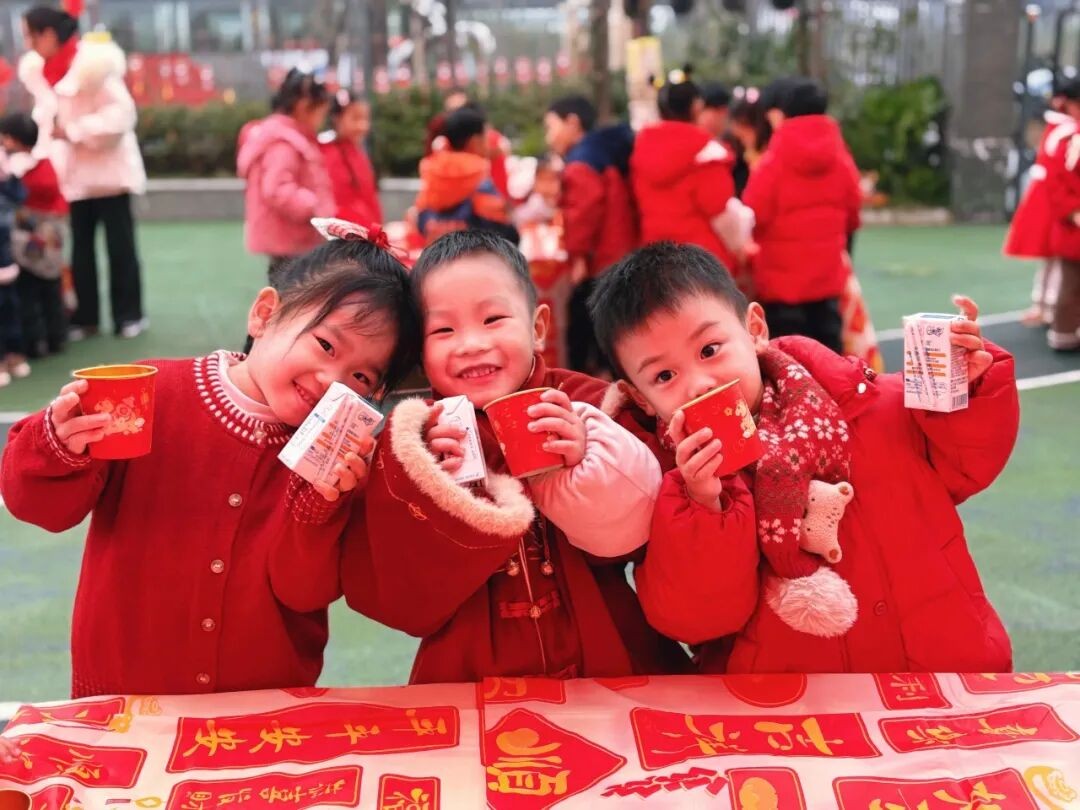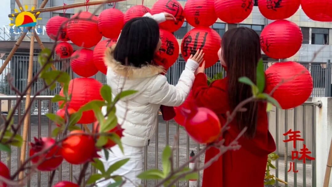 高挂红灯笼,年味漫校园;欣喜齐装扮,元旦喜洋洋。