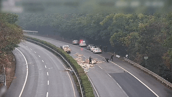 货物散落,部分车道受阻